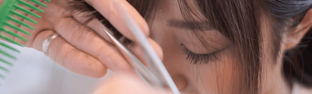まずは前髪に軽さを出して、お客様が気にしていた顔が丸く見えないように顔周りの髪に段差をつけて、カバーできるようにカットしてます。