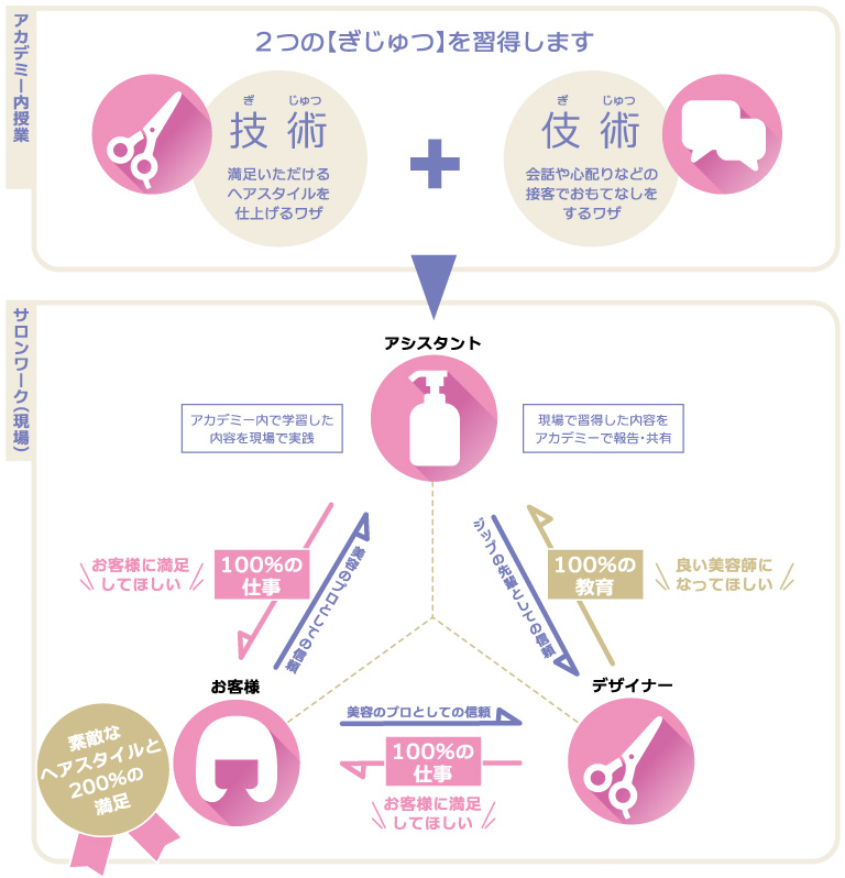 技術や接客のレベルアップと、お客様に必要とされる魅力ある美容師になるためのレッスンです。